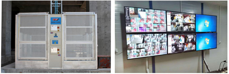 Intelligent driving construction elevator realizes a series of functions, such as automatic stop floor, intelligent layer selection, automatic switch cage door and layer door, real-time video monitoring, data recording, anti-clamping, channel detection, etc. Two intelligent driving construction lifts were installed and installed successfully in Chengdu green 468 project.